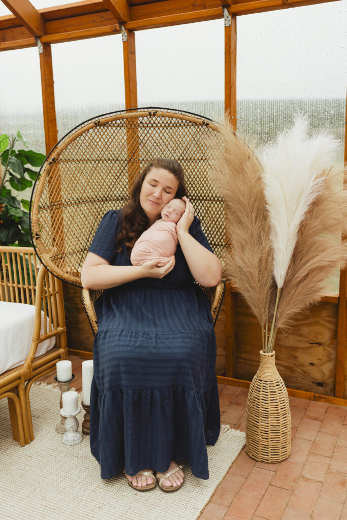 This is my own personal greenhouse studio, and believe me when I say she is CUTE! I do seasonal sets throughout the year, but the majority of the time I have a very natural/boho setup inside. While I mainly use it for my newborn clients, it makes for a great spot for your family or maternity photos, too!